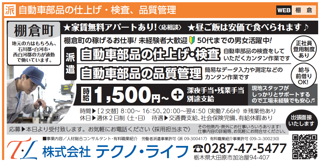 棚倉町の稼げるお仕事!【棚倉町】自動車部品の品質管理