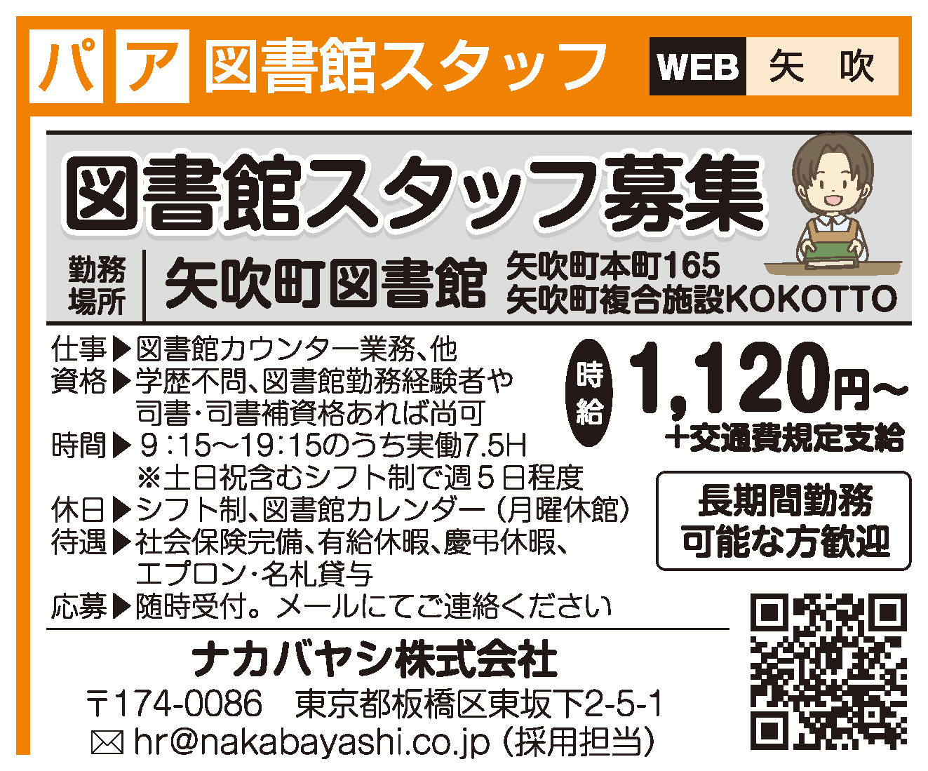 | 応募資格 | 長期勤務が可能な方歓迎 ◎学歴不問 ◎図書館勤務経験者や司書・司書補資格あれば尚可 |