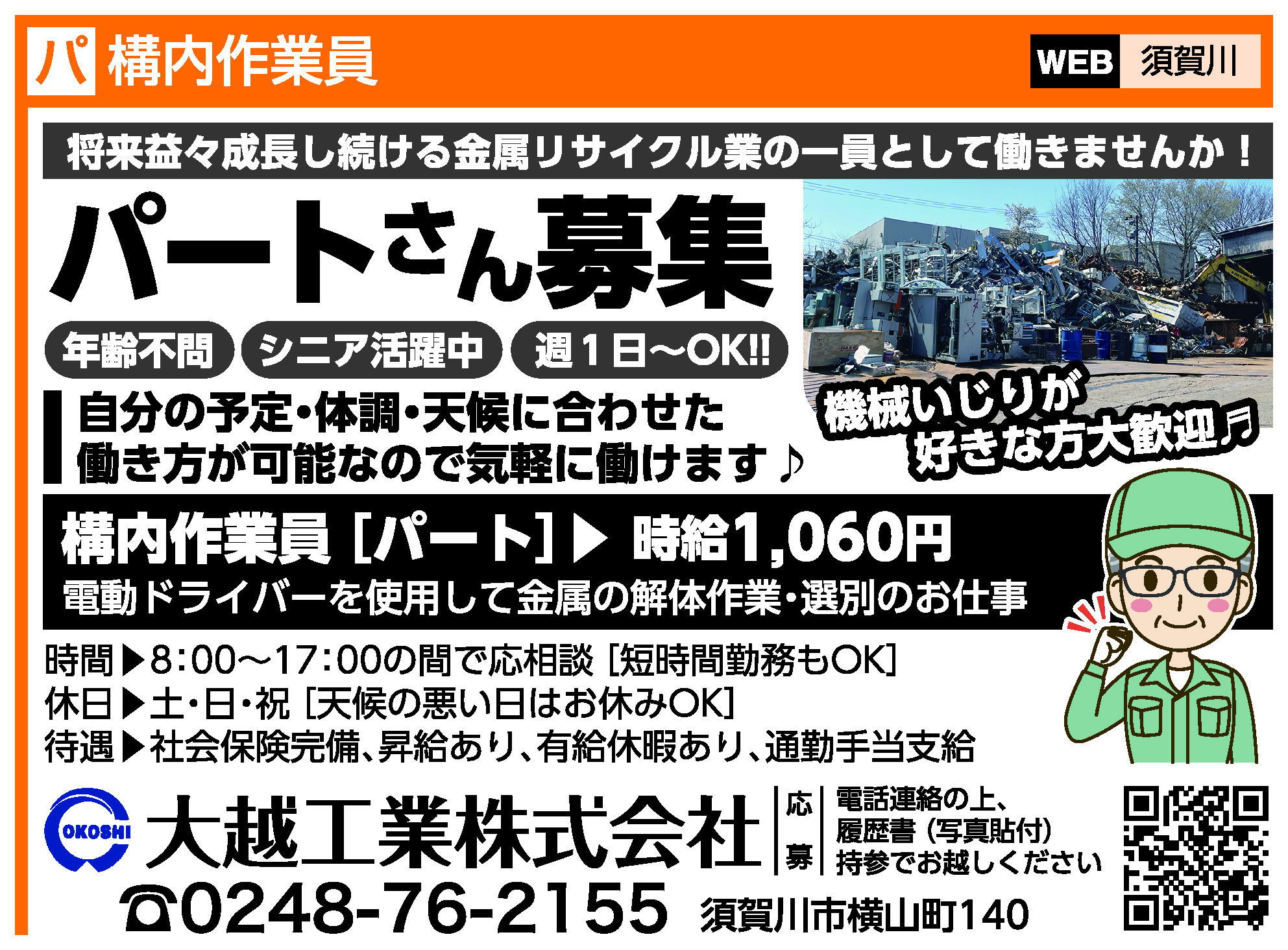 | 応募方法 | 「JOBまざーるWEB」の応募フォームよりご応募または☎0248-76-2155までお気軽にご連絡ください。 |